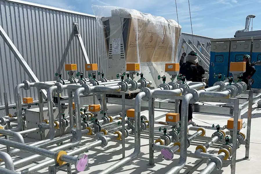 慣れてくれば、板金(ラッキング)工事など、少し手先の技術が必要な工程も見学しながら学んでいきます。安全帯の使用など、ルールを守って作業を進めます。